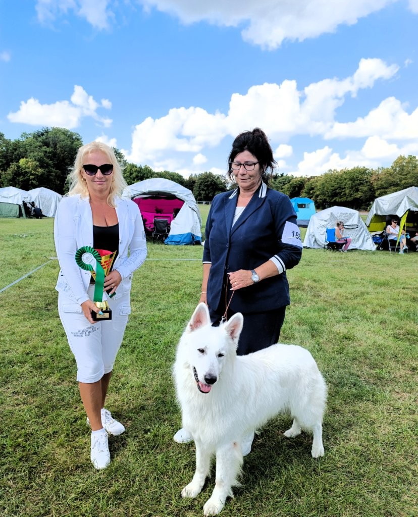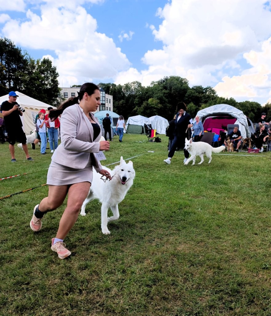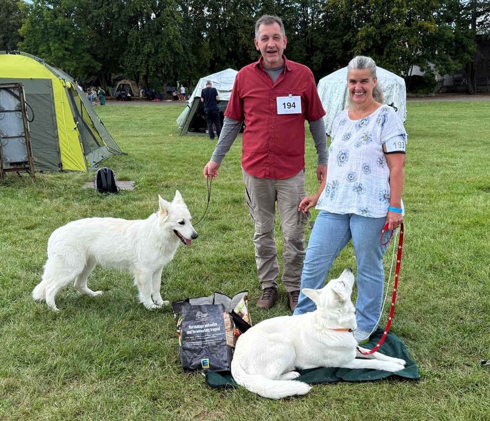 Der agra MESSEPARK Leipzig-Markkleeberg ist eine multivariable Eventlocation an der Stadtgrenze im südlichen Auwald, die Indoor- und Outdoorflächen für unterschiedliche Nutzungen bietet. Am ersten Septemberwochenende veranstaltete der VDH-Landesverband Sachsen erfolgreich zwei hochkarätige Hundeausstellungen (Doppel-CACIB) mit täglich über 1.500 Hunden. Die Sonne zelebrierte ein wunderbares Spätsommerwetter. Alle beteiligten Organisatoren, Ringrichter, Sonderleiter, Ringpersonal, Aufbauhelfer, Securitymänner und -frauen unterstützten zügig den Ablauf der Shows mit Fachkompetenz und persönlichem Engagement. Hektik kam am Sonntag auf, als die Wettbewerbe im Ehrenring (Halle 2) ab 14.30 Uhr begannen und unsere Weißen erst ab 14.30 Uhr im Ring 5 (Außengelände) nach Plan gerichtet wurden. Zum Glück konnten wir unsere Weißen vor der Planzeit der Ringrichterin vorführen.