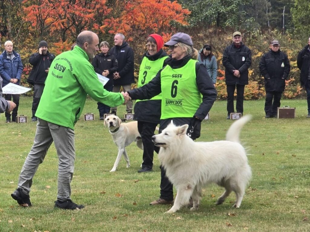 Es gewann Angelika Kochniß mit Fido (Bayrischer Gebirgsschweißhund) mit 198 Punkten. Es war ein ganz enger Wettbewerb. Wir freuen uns für das Oberländerteam, dass es in solch einem Starterfeld wieder vorzüglich mitmischen kann. Weitehin viel Spaß und Erfolg!
